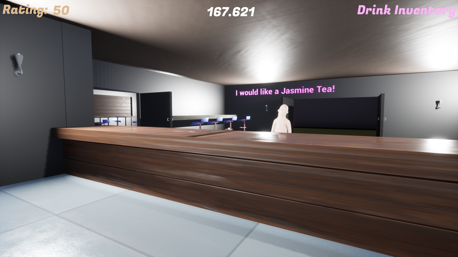 First-person barista simulator built in UE5 using Blueprints and C++. Features recipe systems, timed orders, inventory management and randomized game object systems.